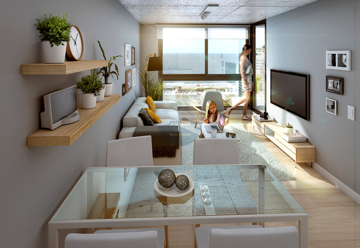 Eve Tower es un nuevo proyecto de Weiss Mora Weiss. La torre se ubica en Av. Roosevelt y Guanabara, a doscientos metros del mar. Cuenta con 25 pisos con 14 apartamentos por planta monoambientes, 1 y 2 dormitorios. Las unidades esquineras son de 2 dormitorios, al frente y contra frente están los mono ambientes y en los laterales las unidades de 1 dormitorio. Lo que tiene de diferente este edificio, es que las tipologías varían ya que los balcones son de diferentes tamaños en los diferentes pisos. Compre ahora con un 5% de descuento.